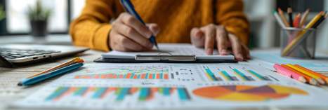 Detailgenaue Auswertung von Diagrammen und Zahlen in einem professionellen Arbeitsumfeld.